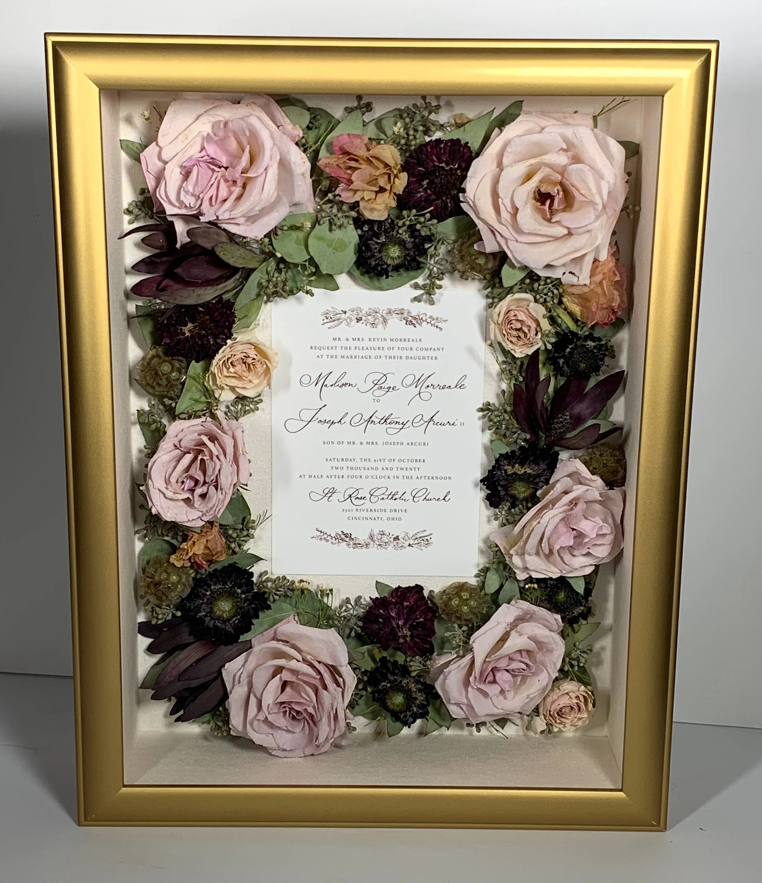 12x16, 4 inch deep- can recreate a downsized version of a bouquet, typically 4-5 hours